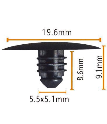 Bu vintin üstü düz, diametri 19,6 mm və uzunluğu 8,6 mm olan, nəqliyyat vasitəsinin bütün hissələri ilə yaxın bir uzunluğu təmin etmək üçün hazırlanmışdır. Ortada qaldırılan hissə diametri 5,5 mm və hündürlüyü 5,1 mm-dir. Bu unikal dizayn yalnız vintin sərtləşən təsirini artırır, həm də quraşdırma prosesini daha hamar edir. Dibi, diametri 9,1 mm olan düz bir dəyirmi bazadır, bu da vida üçün sabit bir dəstək verir. Ümumi ölçü aydın şəkildə qeyd olunur, istifadə edərkən tez bir zamanda müəyyənləşdirmək və seçmək üçün əlverişlidir.