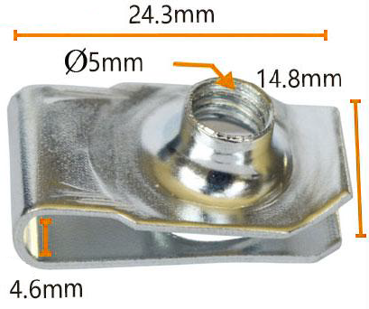 Bərkişik, 24.3mm genişlikdə, 24.3mm və boyu 14.8mm hündürlüyü, avtomobilinizdə bərkidilmə nöqtələri ilə əlaqəli bir uyğunluğu təmin edən dəqiq ümumi ölçülərə malikdir. Bundan əlavə, görüntünün altındakı 4.6mm uzunluğu, məhsulun peşəkarlığını və dəqiqliyini daha da vurğulayan müəyyən bir hissənin kritik bir ölçüyə aid ola bilər.