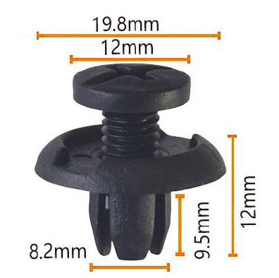 Dəqiq 19.8mm uzunluğu, eni, hündürlüyü 9.5mm, 9.5mm və qalınlığında 8.2mm olan bu bərkidici, müxtəlif avtomobil hissələri ilə sorunsuz bir uyğunluğu təmin edir. Yüksək dərəcəli qara plastikdən hazırlanan, yüngül inşaat, korroziyaya qarşı müqavimət və aşınma müqavimətinə malikdir, uzunömürlülüyünü artırır.